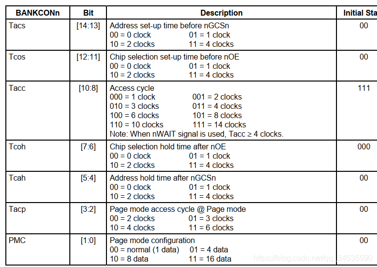 总共有13个寄存器,BANK0~BANK5只需要设置BWSCON和BANKCONx(x为0~5)俩个寄存器