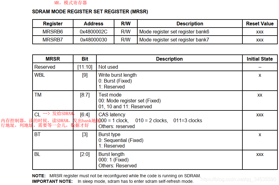 - MRSRBx SDRAM模式设置寄存器