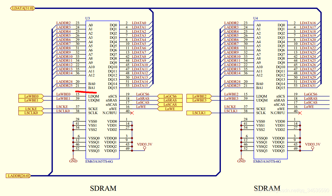 根据原理图可知, ADDR24和ADDR25用来选中bank;行列公用地址线ADDR2-ADDR14;