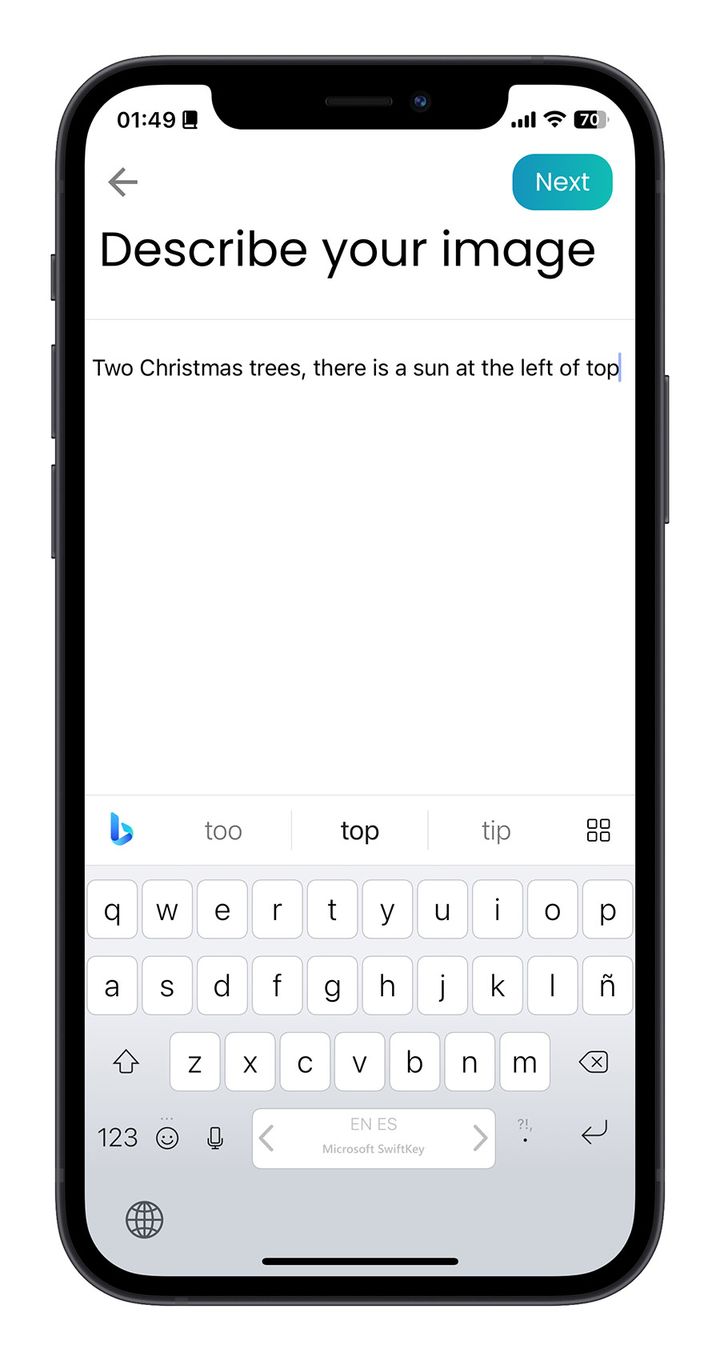 然后按下右上角「Next」就可以让你重新输入一次对于这个AI 画作的Prompt 描述。