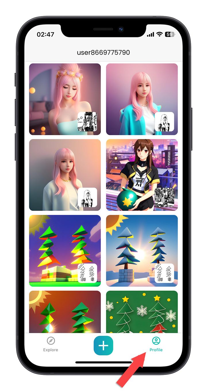 如果你想要浏览过去自己生成过的AI 照片,可以点选下方的Profile 选项,里面就会出现你的所有作品。