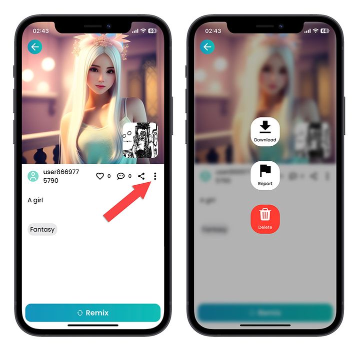 如果对于Scribble AI 生成的图片不满意,你也可以点进每一张AI 产出的照片,然后选择Remix 这个选项。