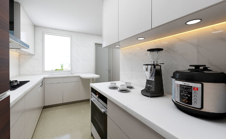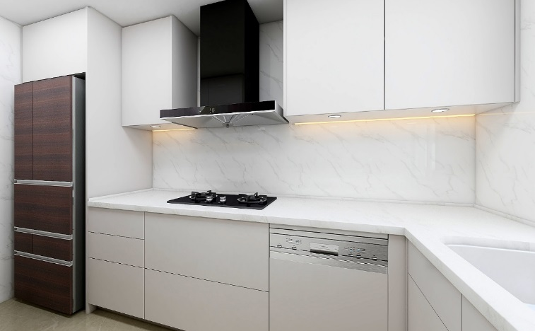 在宽敞整洁的厨房里配置东芝星级料理冰箱,让新鲜可口的美食治愈一家人的生活。