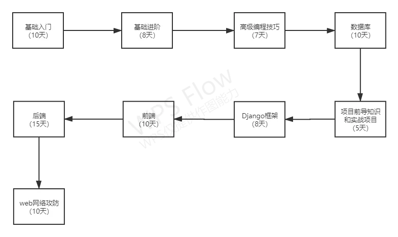 我就拿我自学Python的经历来说吧,当时对我来说是1门全新的语言,在我看完课程大纲之后,我自己做了1个规划图,为什么呢?这样能让我很快地就知道自己处于什么阶段、我后面还有多长的路。