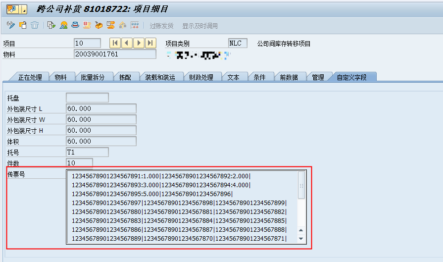 实际业务中,交货单行项目存在多个传票号,所以需要在交货单行项目自定义屏幕上增加一个长文本框(或者表),如下图所示