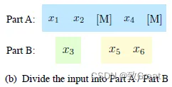 输入x分为两部分:A 部分是损坏的文本xcorrupt,B 部分由屏蔽的 span组成。