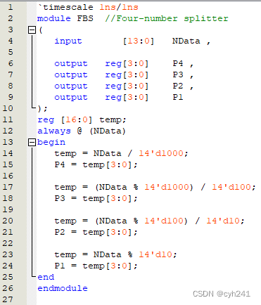 NData获取四位十进制数当NData改变时运算,将各位数据分解给到P1-4,使得四位十进制转换成4个4位BCD码,方便数码管输出。