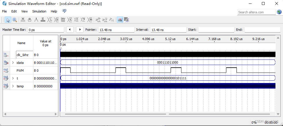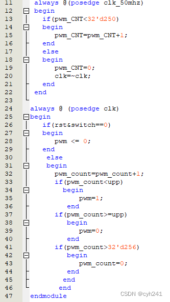 答:通过将锯齿波和输入数据进行比较产生高低电平组成PWM波,如果输入数据>锯齿波数据,就产生高电平,如果输入数据<=锯齿波数据,就产生低电平