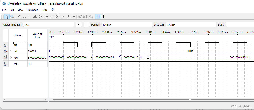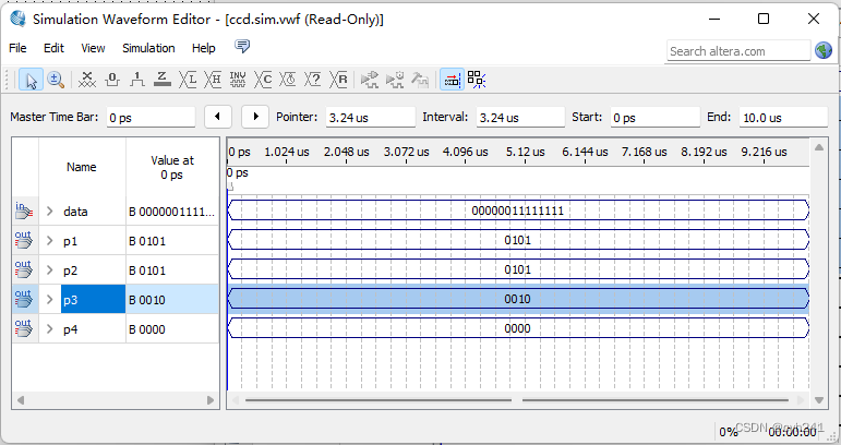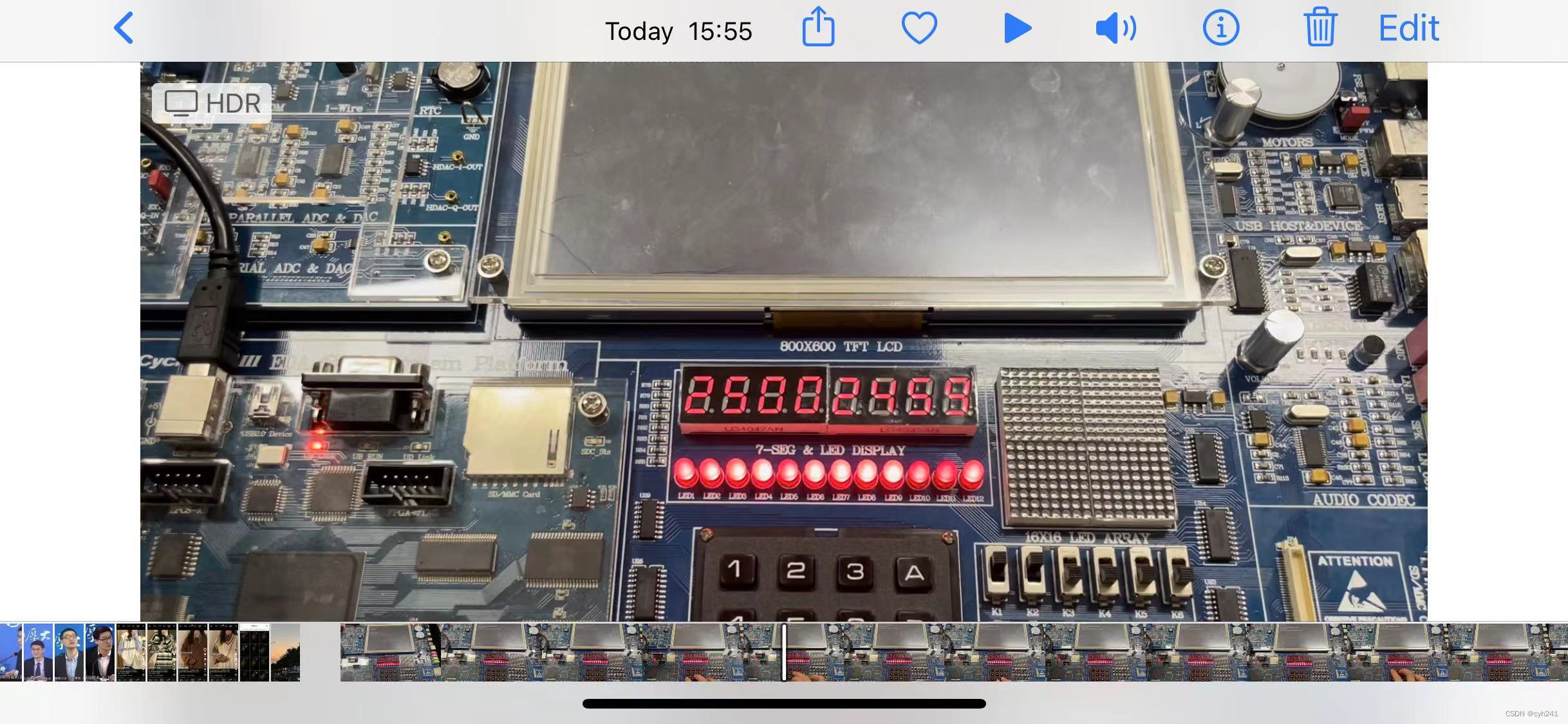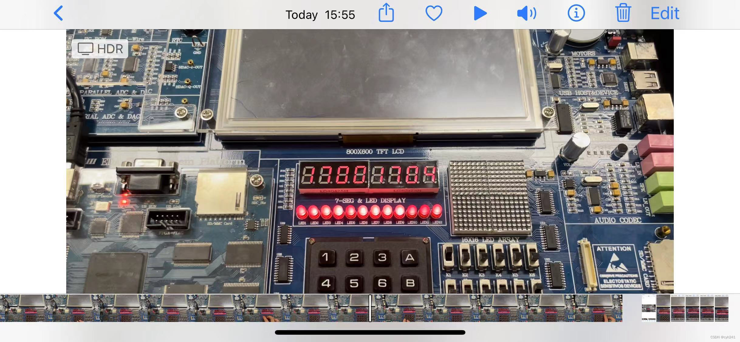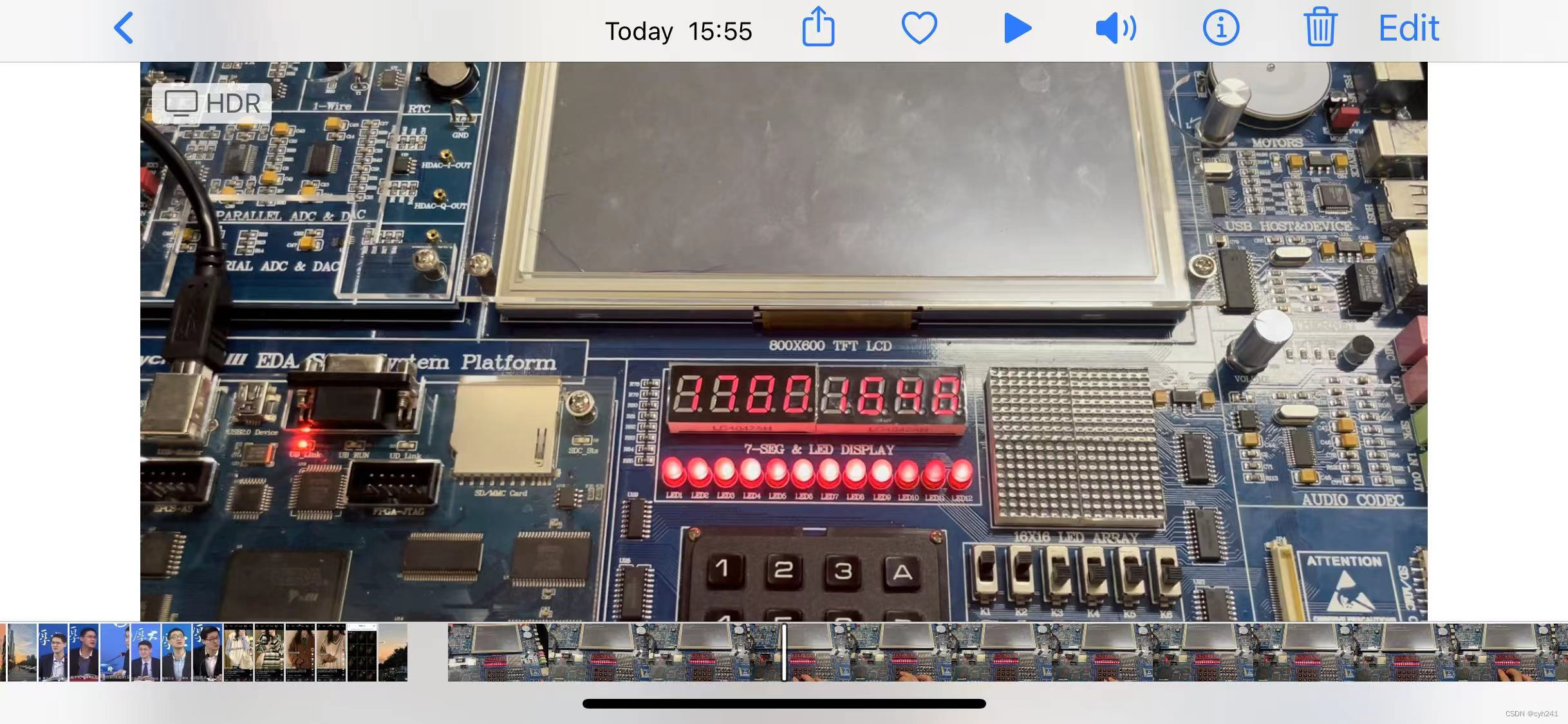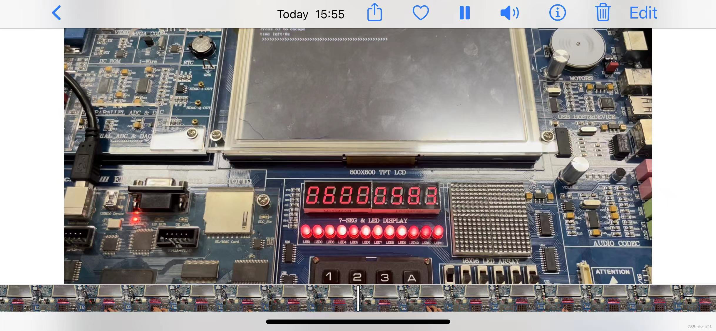 本模块内置1KHZ分频,通过8个4位BCD码获取8位数码管输出,因为人眼的残影效果,无需过高频率即可得到同时显示的效果。因主要由硬件测试,本模块未进行波形仿真。