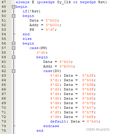 Data获取到矩阵键盘传输的数据,同时Clk获取键盘已经被按下的状态,在Clk上升沿进行运算。将先输入的数据向右移位,当获得已经获得四位数时截取百位到个位乘十然后加入新的数以实现一直有四位数据。