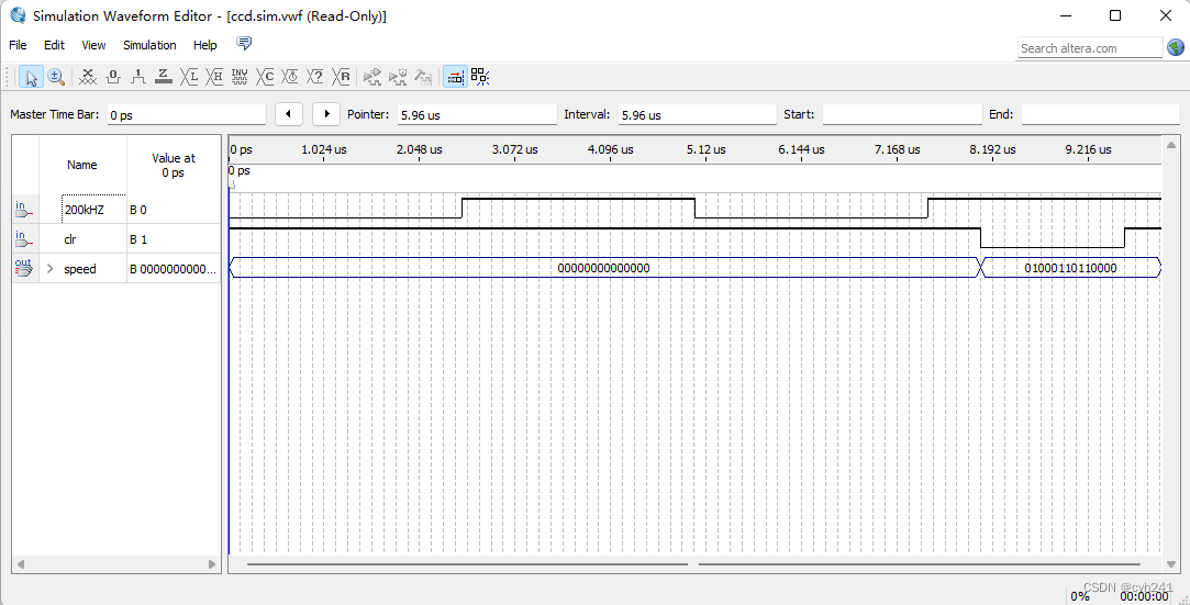 答:锯齿波通过计数器实现,频率不宜过高或过低,经过测试,选择输出锯齿波频率为800HZ,输入频率为200KHZ,产生0到256的锯齿波,因此位宽为8位,