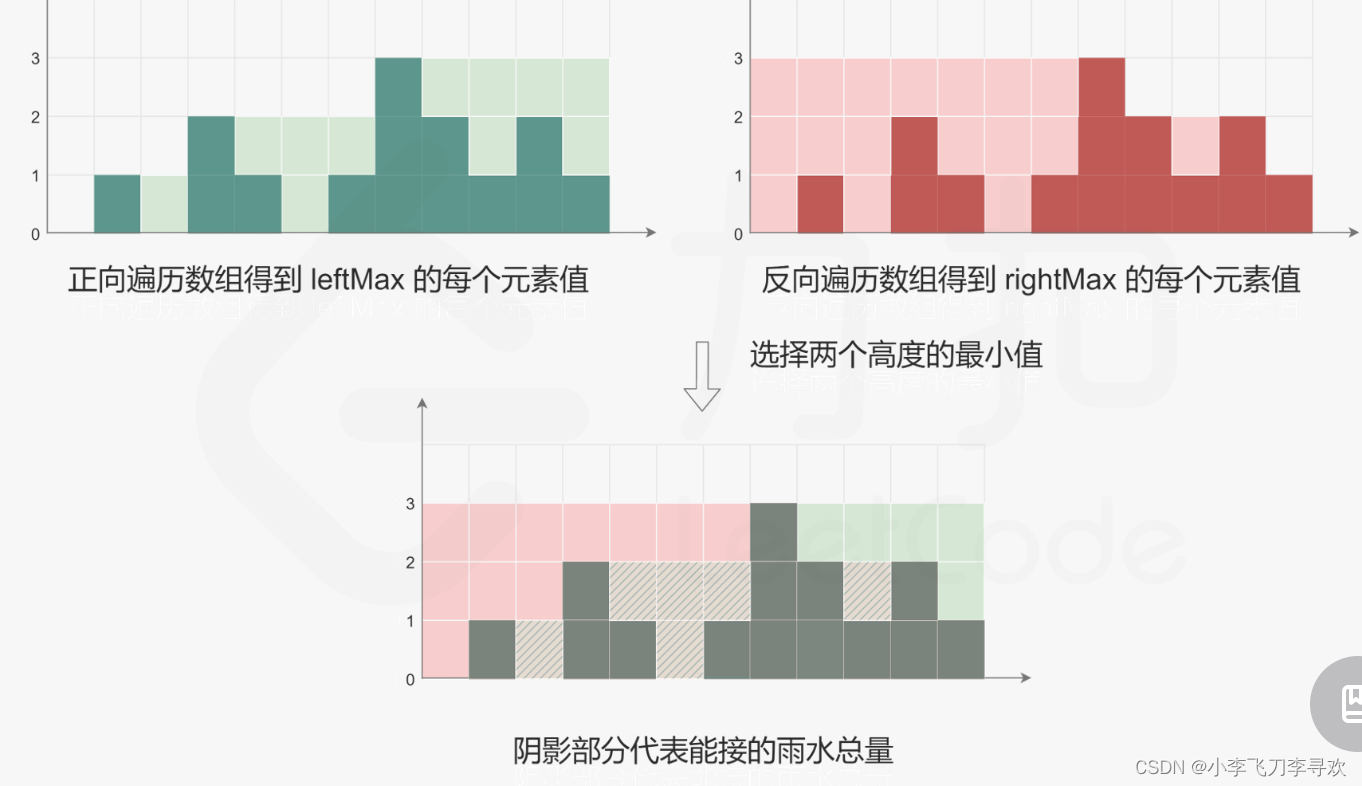 接雨水1,力扣官方:实心柱体中间能存多少雨水?(柱体不一样高,因而能存水)
