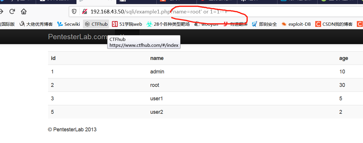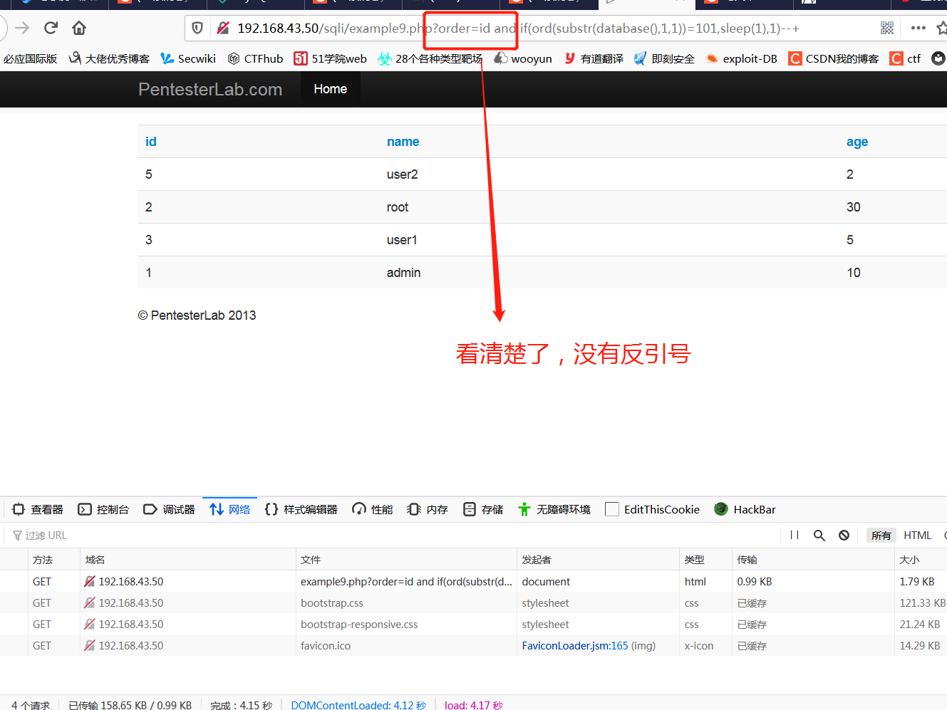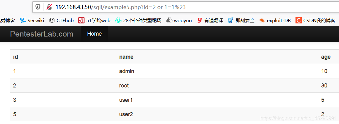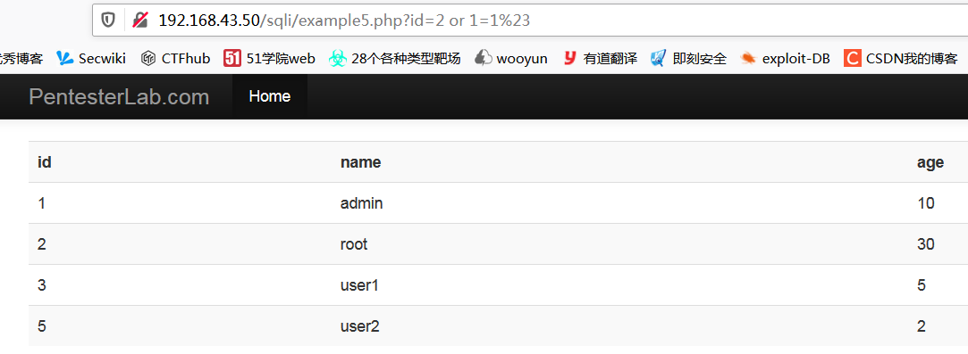 这是没有任何过滤的SQL注入,我将会详细介绍这一个例子,接下来每一个例子只会介绍绕过方法(敲黑板)