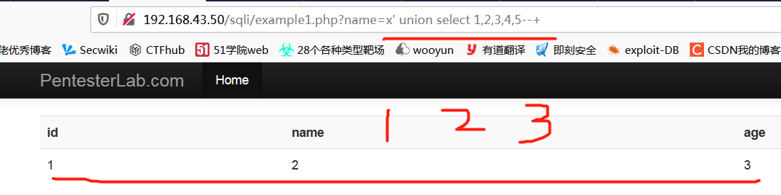 然后union 注入 判断可以注入的列数是那几列,得出1,2,3列可以注入:
