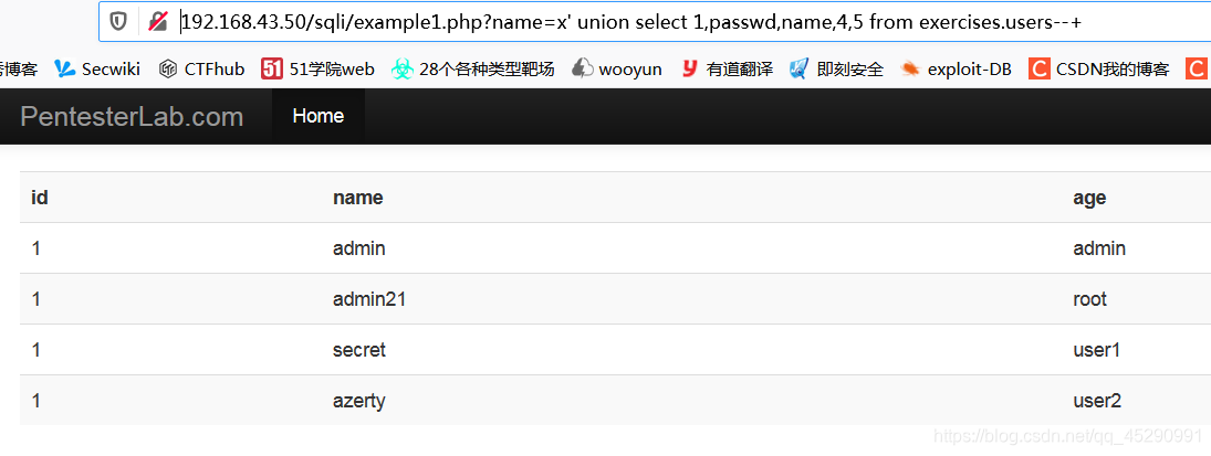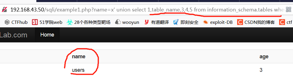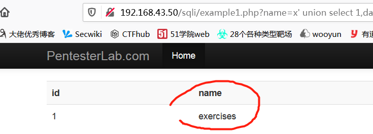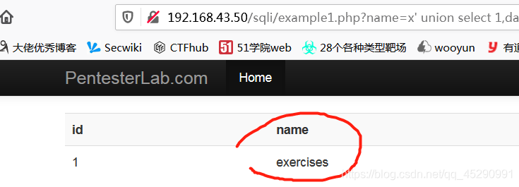 union select 1,table_name,3,4,5 from information_schema.tables where table_schema='exercises'--+查看表名: