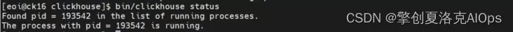 看到上图的提示,就说明安装成功了,可以使用`clickhouse status`命令来检查运行状态:
