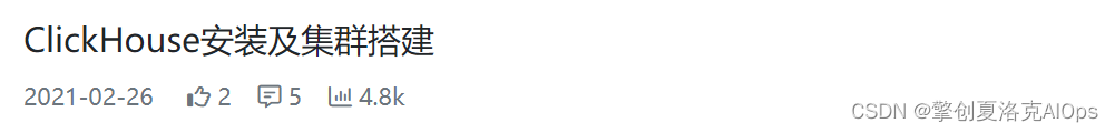 关于“ClickHouse”集群安装 ,教程在网上随便一搜 ,就能找到很多。本人也曾写过一篇相关的文章,竟然有近4000多的阅读,可见,在`ClickHouse`越来越火热的当下,如何高效地部署`ClickHouse`集群 ,已经越来越受运维工程师,甚至开发人员的关注。