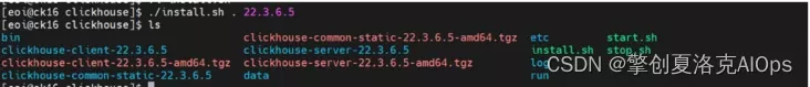 在`/home/eoi/clickhouse`目录下运行`./install.sh . 22.3.6.5`,会在当前文件夹下多出下面这些文件: