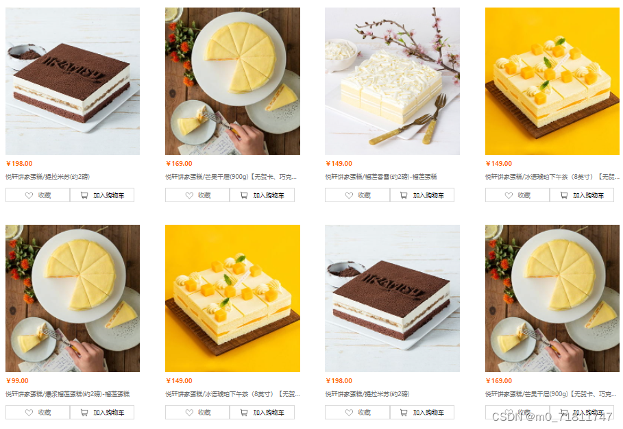 悦轩饼家蛋糕/芒果千层(900g)【无贺卡、巧克力牌、蜡烛、生日帽】