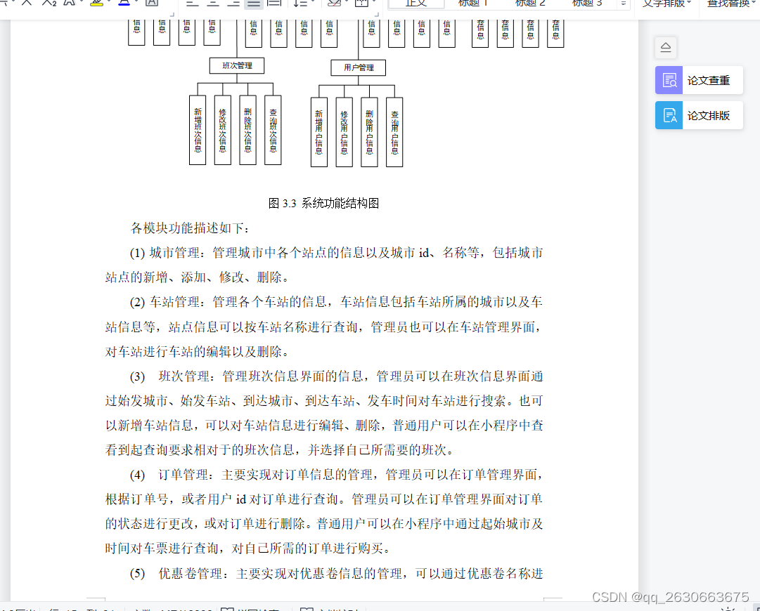其次,对当前软件开发技术进行了研究,提出了基于微信小程序平台,采用微信开发者工具、idea开发,使用MySQL数据库管理数据的开发方案。再次,采用UML建模技术对系统进行需求分析、功能设计以及类的设计;最后为给汽车售票系统提供一个管理的平台,特开发了本微信小程序汽车售票系统。用户可以随时查看汽车售票信息、在线购票等。系统功能齐全,方便易用。
