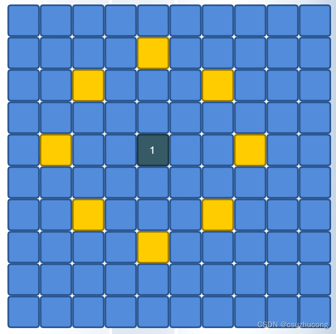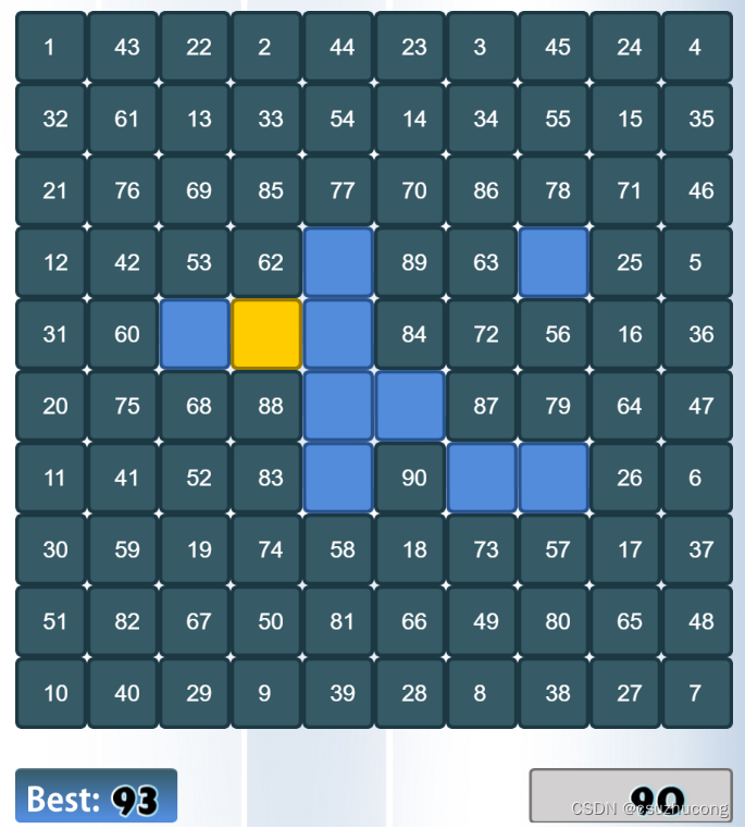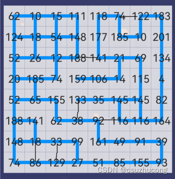 每个格子有8个邻居(部分格子可能只有3-7个邻居),按照这种关系把100个格子转化成无向图,寻找此图的曼哈顿链。