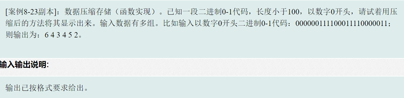 {int compress(char array[], int count[]);char array[LEN];int count[LEN];int i;int tail; //count数组的有效最末下标while(scanf("%s",array)!=-1){tail = compress(array, count); //引用函数for(i=0;i