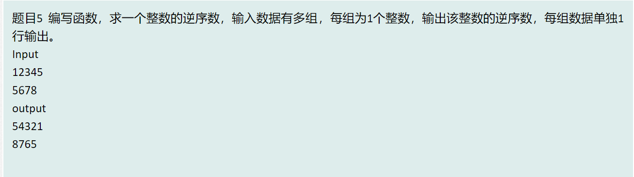 {int sum,k;sum=0;while(x>0){k=x;k=k%10;sum=sum*10+k;x=x/10;}return sum;