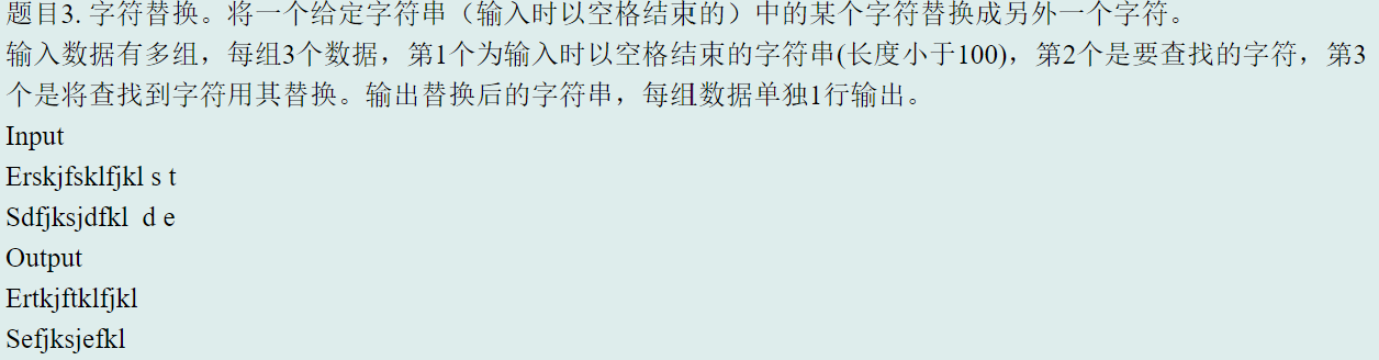 {char a[100],x,y;int i;while(scanf("%s %c %c",a,&x,&y)!=-1){change(a,x,y);printf("%s\n",a);}return 0;