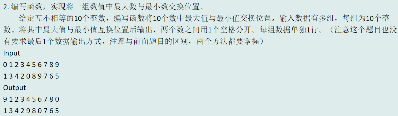 {int i,m,a[10];//start //endwhile(scanf("%d",&a[0])!=-1){for(i=1;i<10;i++)scanf("%d",&a[i]);func_xx(a,10);for(i=0;i<10;i++)printf("%d ",a[i]);printf("\n");}