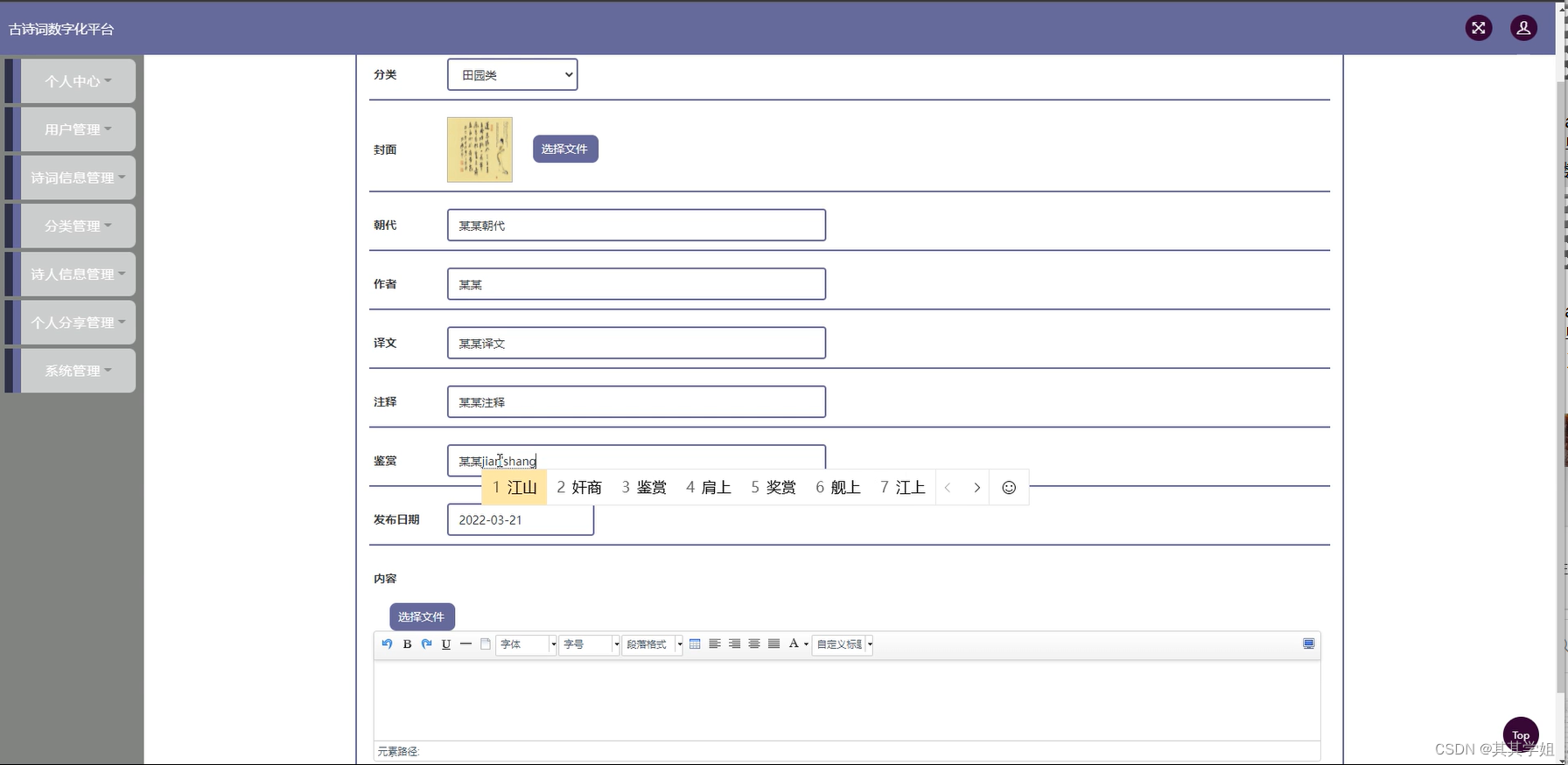 [附源码]java+ssm计算机毕业设计古诗词数字化平台2h517(源码+程序+数据库+部署)