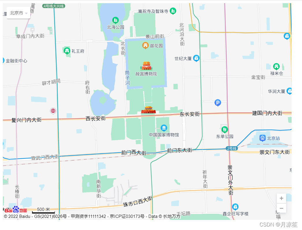 map.enableScrollWheelZoom(true); //开启鼠标滚轮缩放// 地图控件var scaleCtrl = new BMapGL.ScaleControl(); // 添加比例尺控件map.addControl(scaleCtrl);var zoomCtrl = new BMapGL.ZoomControl(); // 添加缩放控件map.addControl(zoomCtrl);var cityCtrl = new BMapGL.CityListControl(); // 添加城市列表控件map.addControl(cityCtrl);