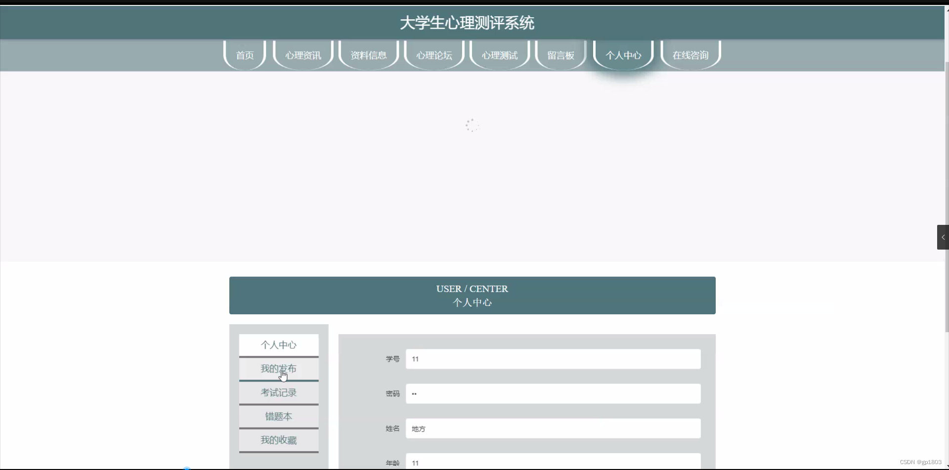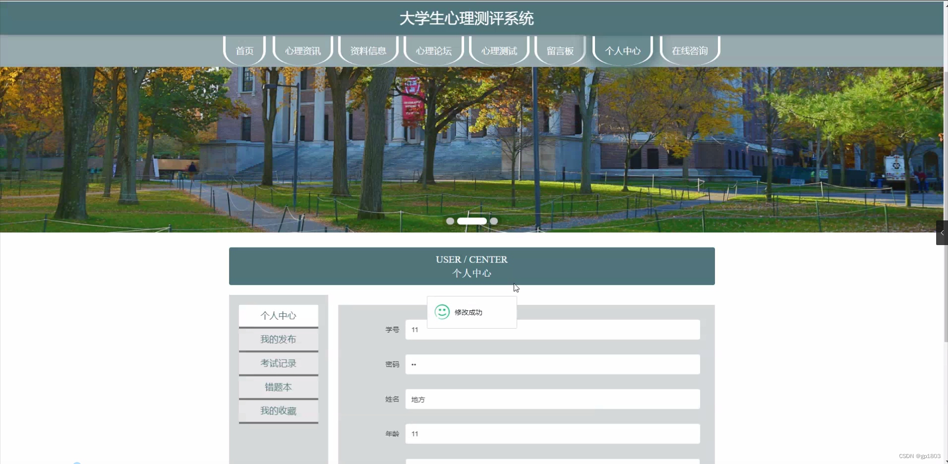 学生功能:设计学生个人信息管理模块,包括基本信息、心理测试结果、心理咨询记录等,以便更好地了解学生的心理状态和需求。