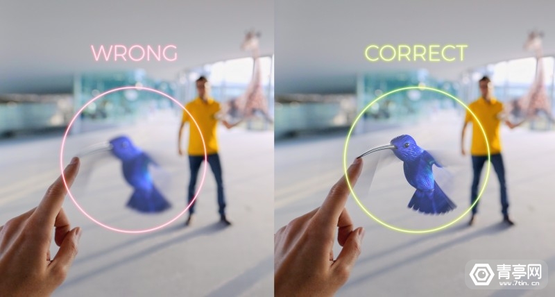 在VR中,你的注意力通常放在远处的内容上,应用中的交互通常也设定在与用户有一定距离的位置。而在手势识别模式中,不管你的手如何靠近眼前,虚拟手看起来都比较清晰,没有明显的聚焦变化,而这并不符合物理规律,因此可能会打破沉浸感。