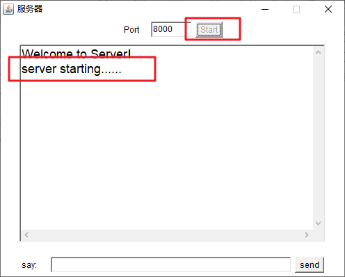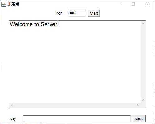 import java.net.*;public class Server {public static void main(String[] args) {ServeMainFrame serveMainFrame = new ServeMainFrame("服务器"); //创建主窗体,标题为“服务器”serveMainFrame.setVisible(true); //设置主窗体可视化}