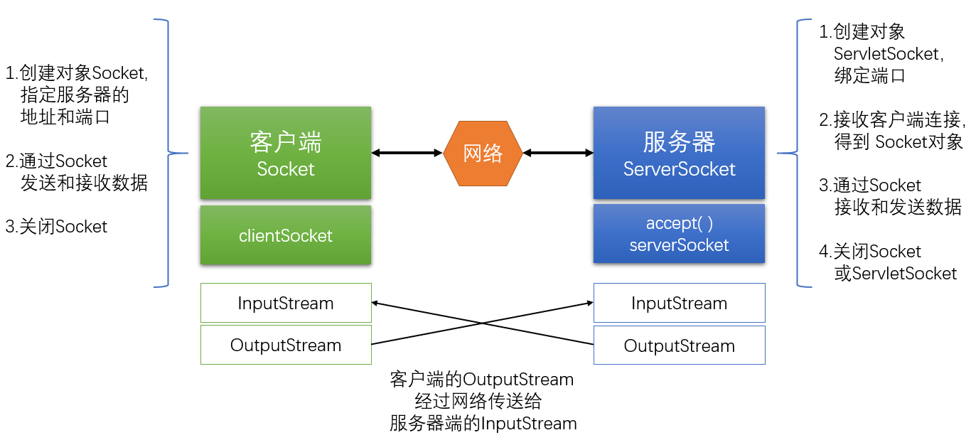 - 5. 服务器端的accept() 方法返回一个新的 Socket对象,该对象连接到客户端。