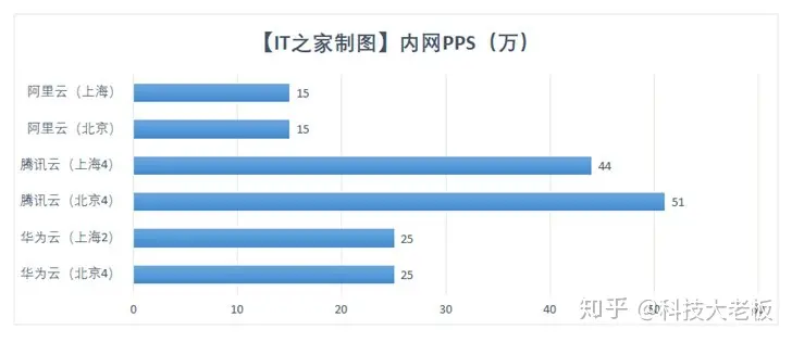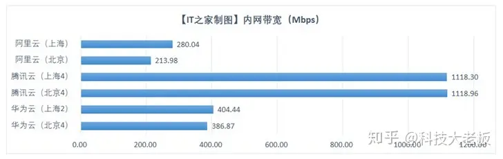 而在云主机的内网性能当中,腾讯云大幅度领先,位列第一: