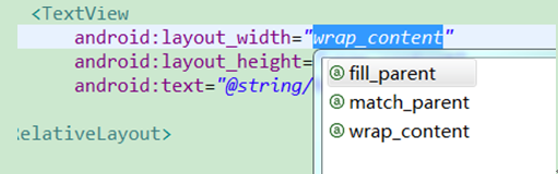"fill_parent" //强制让它布满填满父控件的空白"wrap_content" //设置控件高度刚好能够显示当前内容的大小"match_parent" //和fill_parent是一个意思,他们的定义本质是一样的,均为-1,只是换了别名,为了命名更准确些, 官方更推荐使用match_parent
