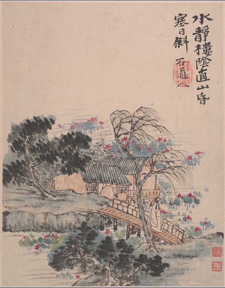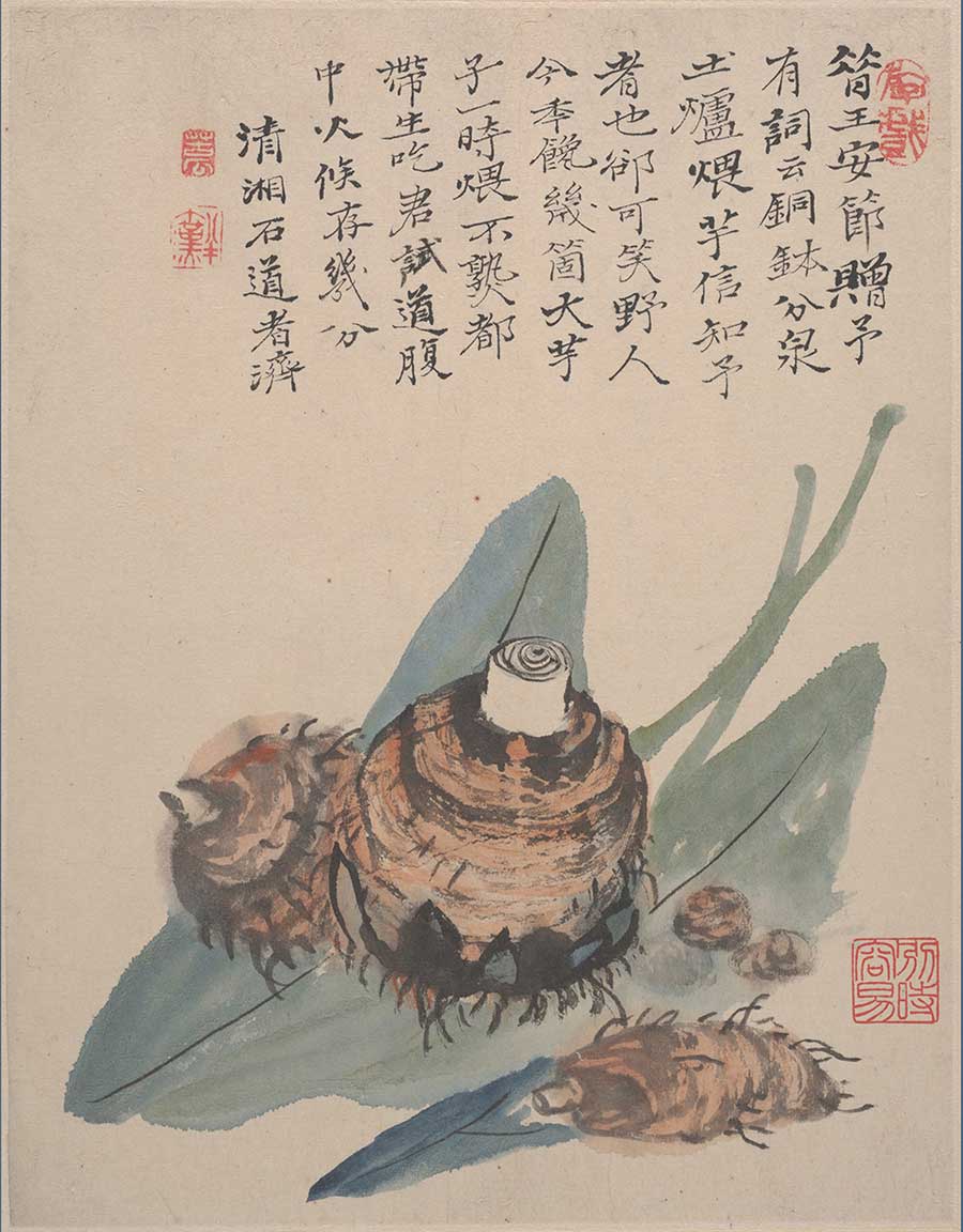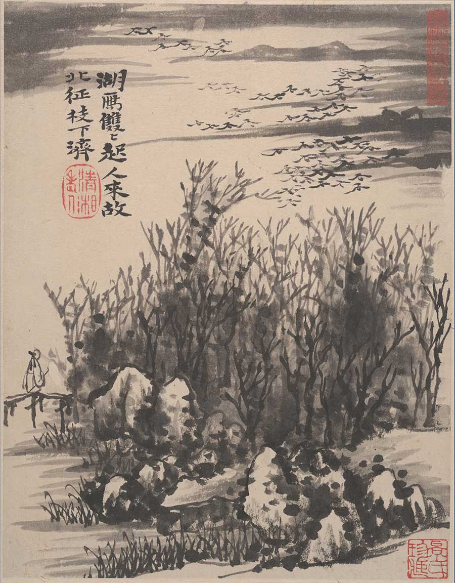 石涛(1642-约1718年),俗姓朱,明宗室靖江王朱赞仪十世孙,谱名若极,广西桂林人。明灭亡后,出家为僧,法名原济,字石涛,号清湘老人、苦瓜和尚等。工于诗文,擅绘山水、兰竹、花草及人物。其笔情纵恣凝炼,独具创新,对扬州画派和近、现代中国画的影响极大。与清初画坛朱耷、髡残、弘仁合称“清四僧”,著有《苦瓜和尚画语录》,针对画坛时弊提出诸多精辟见解。他主张“笔墨当随时代”和“借古以开今”,强调对大自然要有真切的艺术感受,在艺术创作时要“我自用我法”,反对泥古不化。