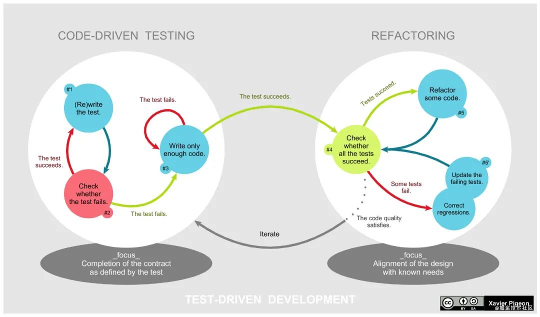 测试驱动开发(TDD)要求以测试作为开发过程的中心,要求在编写任何代码之前,首先编写用于产码行为的测试,而编写的代码又要以使测试通过为目标。TDD要求测试可以完全自动化地运行,并在对代码重构前后必须运行测试。