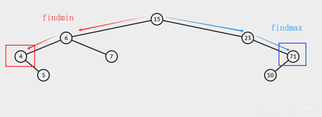 因为所有节点大的都是往右面插入,所以只需要找到最右侧的返回即可,实现方法与findmin()方法一致。