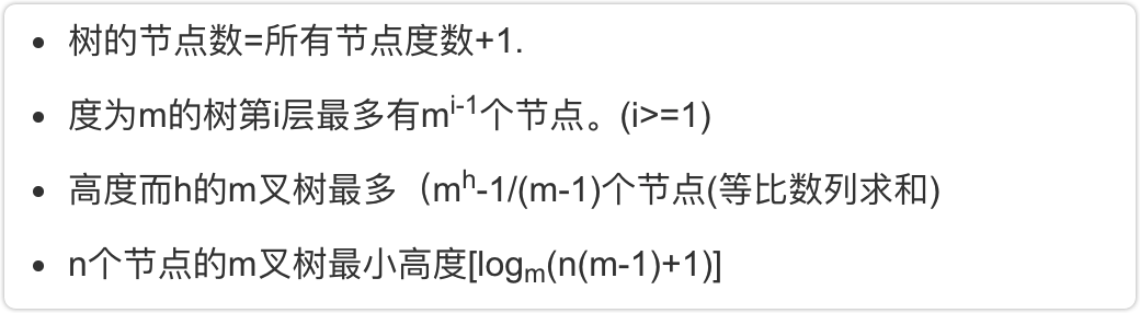 4、高为h的树最多有(2^h)-1个节点(等比求和)。