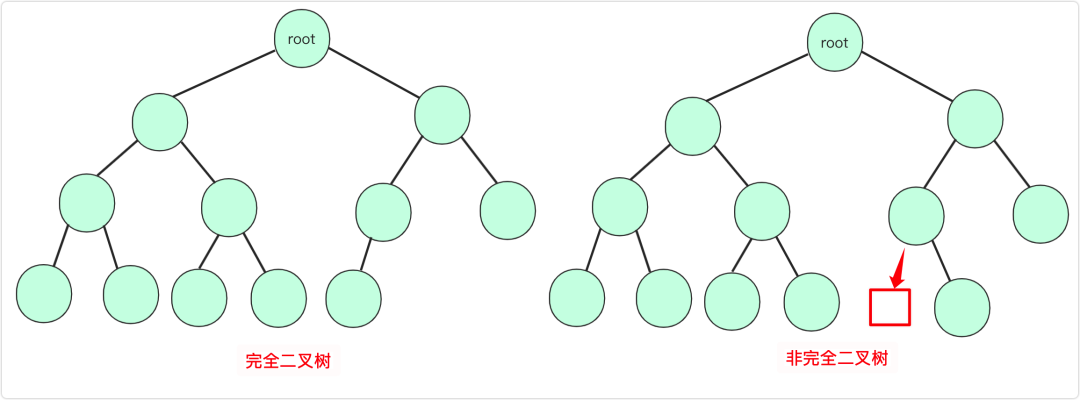 完全二叉树:上面一层全部满,最下一层从左到右顺序排列