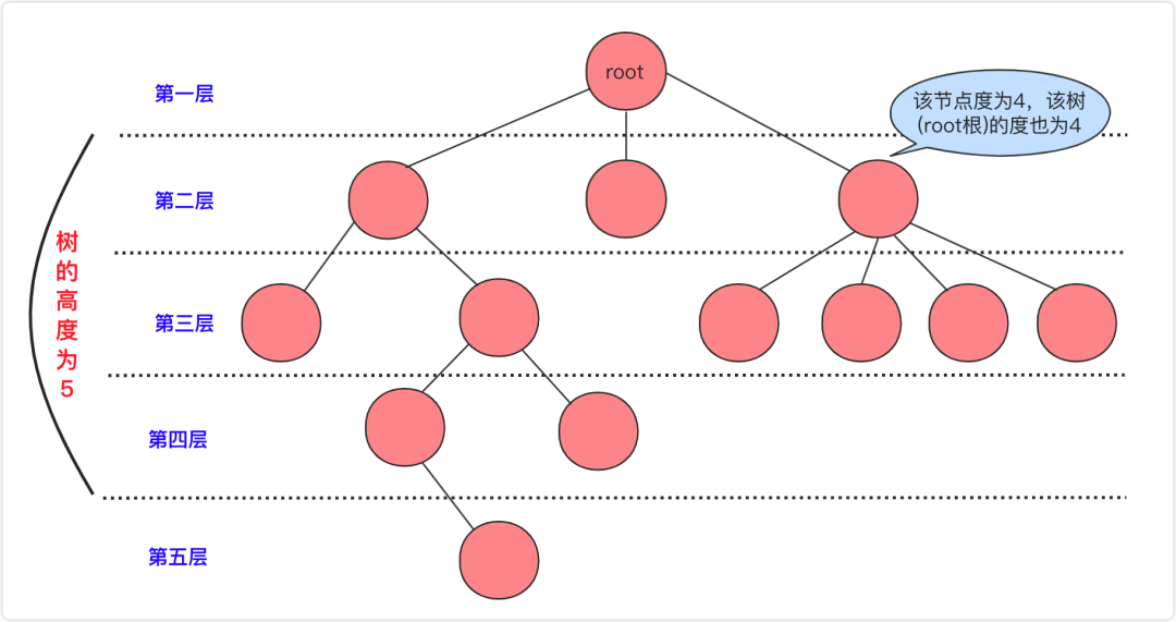 层数: 一般认为根节点是第1层(有的也说第0层),而树的高度就是层数最高(上图层数开始为1)节点的层数