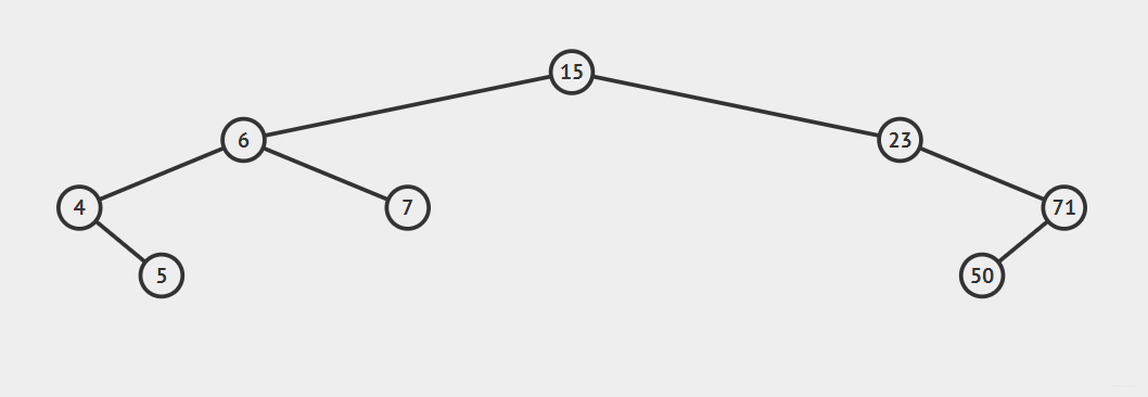 例如一个二叉排序树依次插入15,6,23,7,4,71,5,50会形成下图顺序