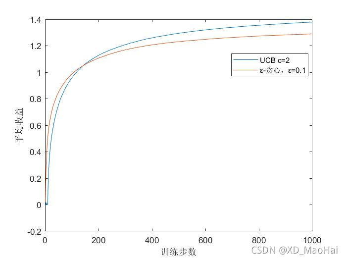 全局平均收益(Average Reward):在每次学习过程(可以理解为对多个不同的老虎机同时进行训练)的相同训练步数下的平均收益的平均值(注意:这里有两个“平均”)。例如对于第m次学习过程,在第n次训练步数下可以得到前n次的实际收益的平均值