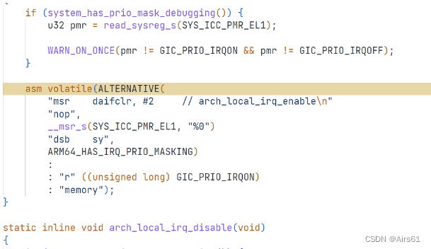 #elseasm volatile("add x0, x29, 16\n\t" //X0寄存器用于传递参数&tv"mov x1, #0x0\n\t" //X1寄存器用于传递参数NULL"mov x8, #0xa9\n\t" //使用X8传递系统调用号169"svc #0x0\n\t" //触发系统调用);