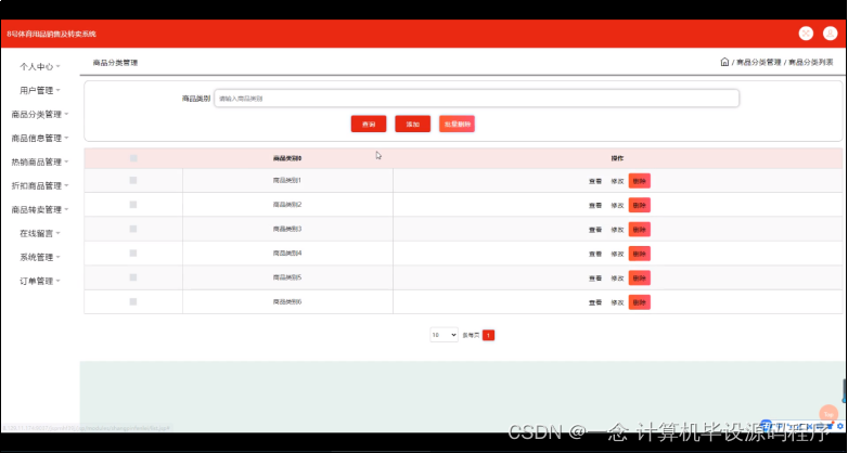 商品分类管理,在商品分类管理页面可以对商品分类进行查看,修改和删除等操作,如图5-7所示。