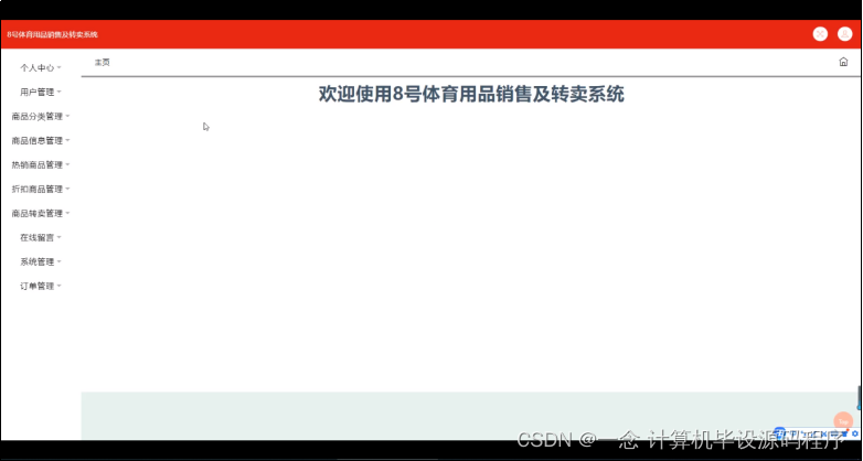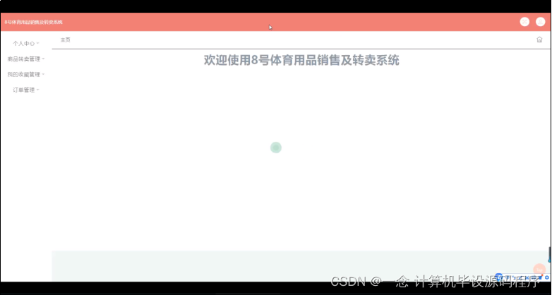 用户登录进入8号体育用品销售及转卖系统可以对主页,个人中心,商品转卖管理,我的收藏管理,订单管理等功能进行相应操作,如图5-11所示。
