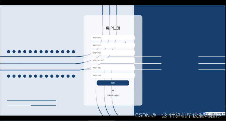用户注册,在用户注册页面通过填写账号,姓名,密码,再次输入密码,年龄,手机等信息进行注册操作;如图5-2所示。
