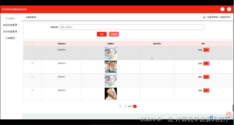 我的收藏管理,在我的收藏管理页面可以对收藏名称,收藏图片,推荐类型等内容进行查看和删除等操作,如图5-14所示。